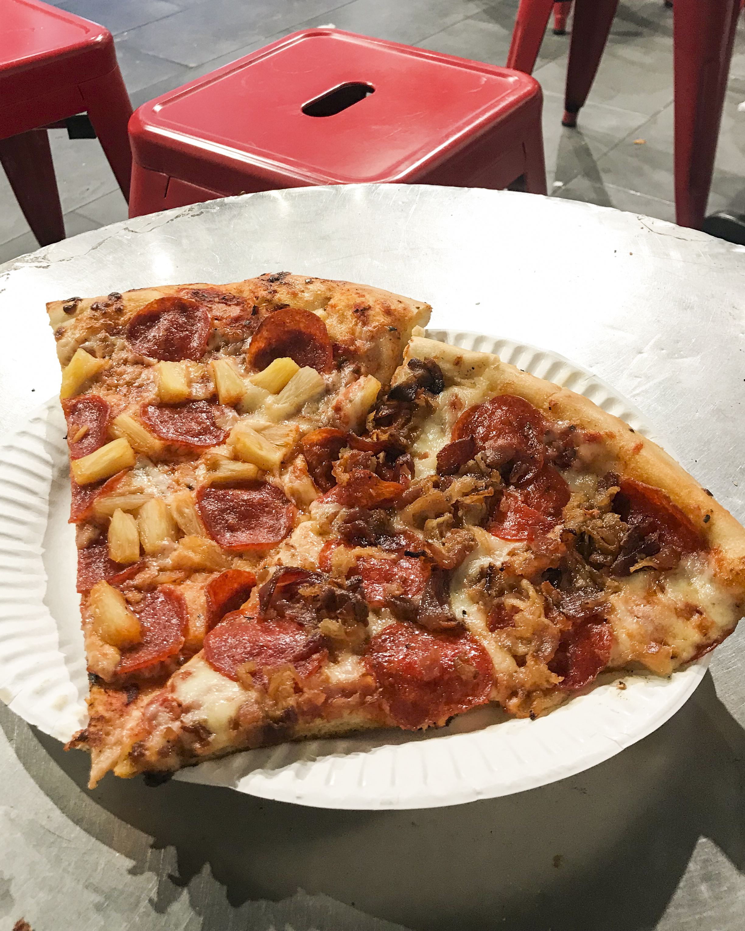 We woke up after our first night to a very rainy New York City. We decided to purchase umbrellas from the corner store and explore Queens for the day. Our Airbnb was located in a culturally rich neighborhood. Every person we passed on the street spoke a different language. We wandered to a busier part of town and decided to have lunch at The Arepa Lady. Arepas are Colombian cuisine typically made from soaked and ground maize kernels. I ordered a pork belly Arepa de Rellena (stuffed) and my husband ordered a chorizo Arepa de Queso (flat). Our dishes also came with three different sauces that were heavenly!