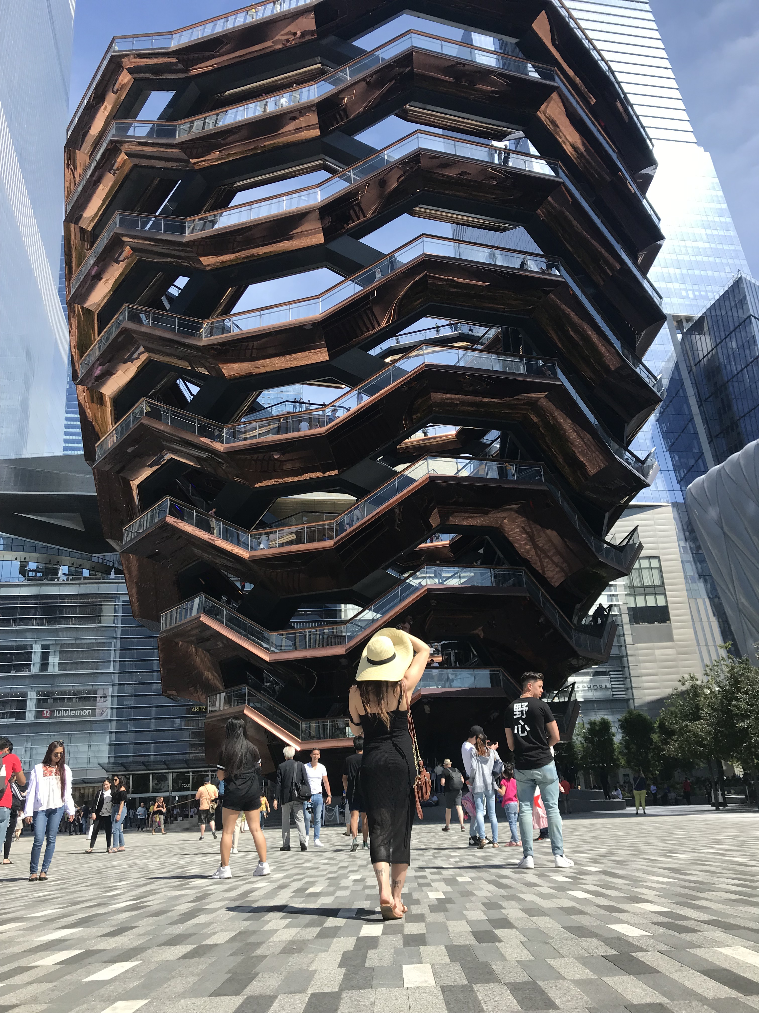 The third day in New York started with a two hour delay due to our confusion with the lovely NY subway system. Thankfully, people in New York are so friendly, we asked for help and were pointed in the RIGHT direction to our destination: The Vessel. The Vessel is one of NYC’s newest landmarks, a centerpiece of the Hudson Yards, the city’s most expensive real state area on Manhattan’s west side. The structure is 16 stories (150 ft) high and offers spectacular views of the city from all angles. We enjoyed ground views from all around the structure because the line to enter the structure was extremely long. It truly is a remarkable sight to see! After our visit to The Vessel, we headed to New York’s largest outdoor rooftop bar, Magic Hour. This rooftop is frequented by celebrities and is considered by locals to theme an urban amusement park. It features fun artsy structures, mini golf, and Empire State Building skyline. We enjoyed sipping on fancy drinks on an antique carousel seating lounge. We connected with locals and fell in love with New York City night life!
