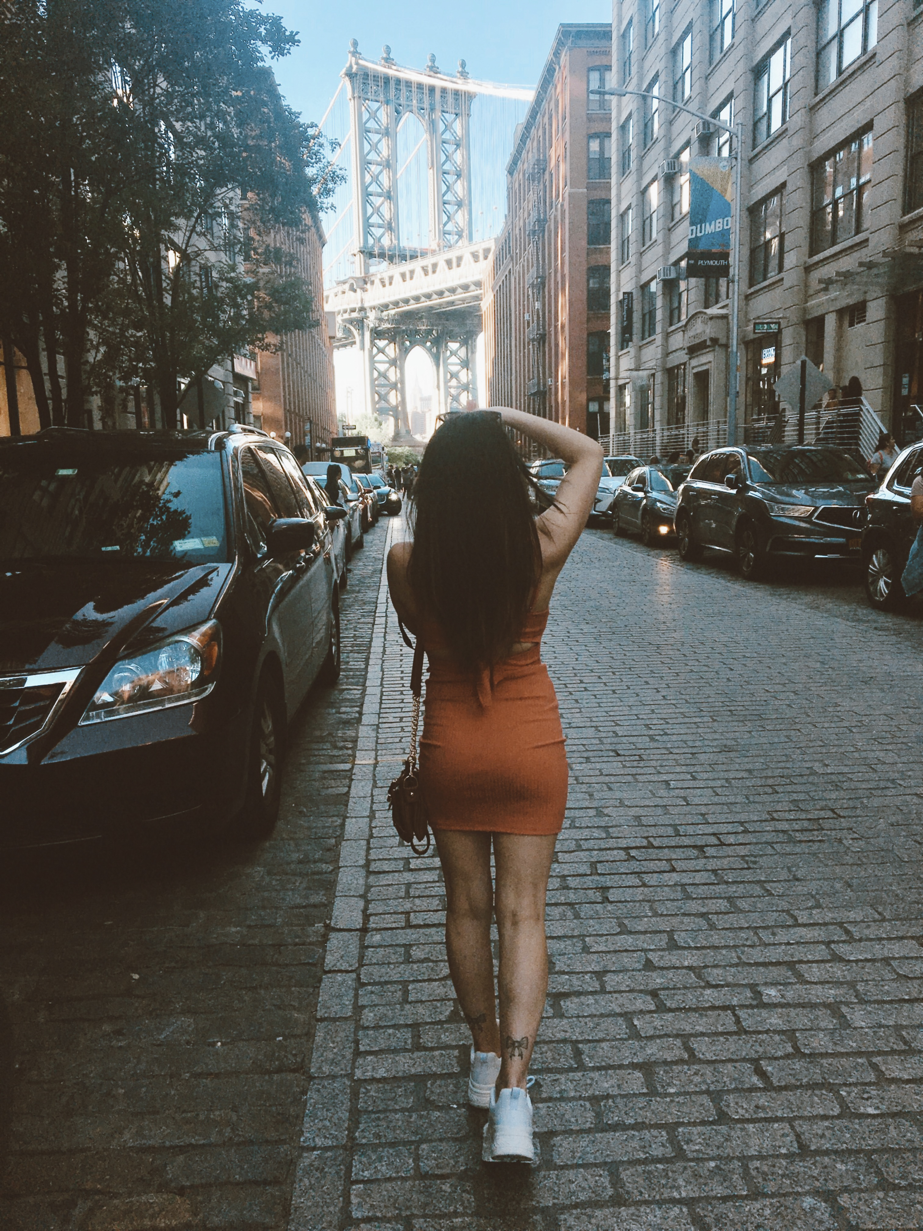We were in a constant state of absolute awe of the architecture that surrounded us. We were drawn to all the culture and creativeness that was happening too! We saw local artists filming a music video, people vlogging about New York, photographers and tourists. We ended up in Foley Square which was such a treat because just around the corner was the an iconic landmark I had my sights on before even stepping foot in New York; The Brooklyn Bridge. This was truly one of the best moments in NYC. The mile long bridge is filled with pedestrians, bikers, musicians, tourists, photographers, food vendors, you name it, it’s there! We saw the Statue of Liberty across the Upper Bay and took in the city from a whole new angle. Upon arriving in Brooklyn we headed straight to Dumbo! We spent the evening photographing and settled in Brooklyn Bridge Park to watch the sunset. It wasn’t long before we felt a sense of belonging, a piece of home, in Brooklyn. We had a late night dinner at an Italian joint about a mile away from the park called Love and Dough. We enjoyed some pasta made from scratch and iced green tea!